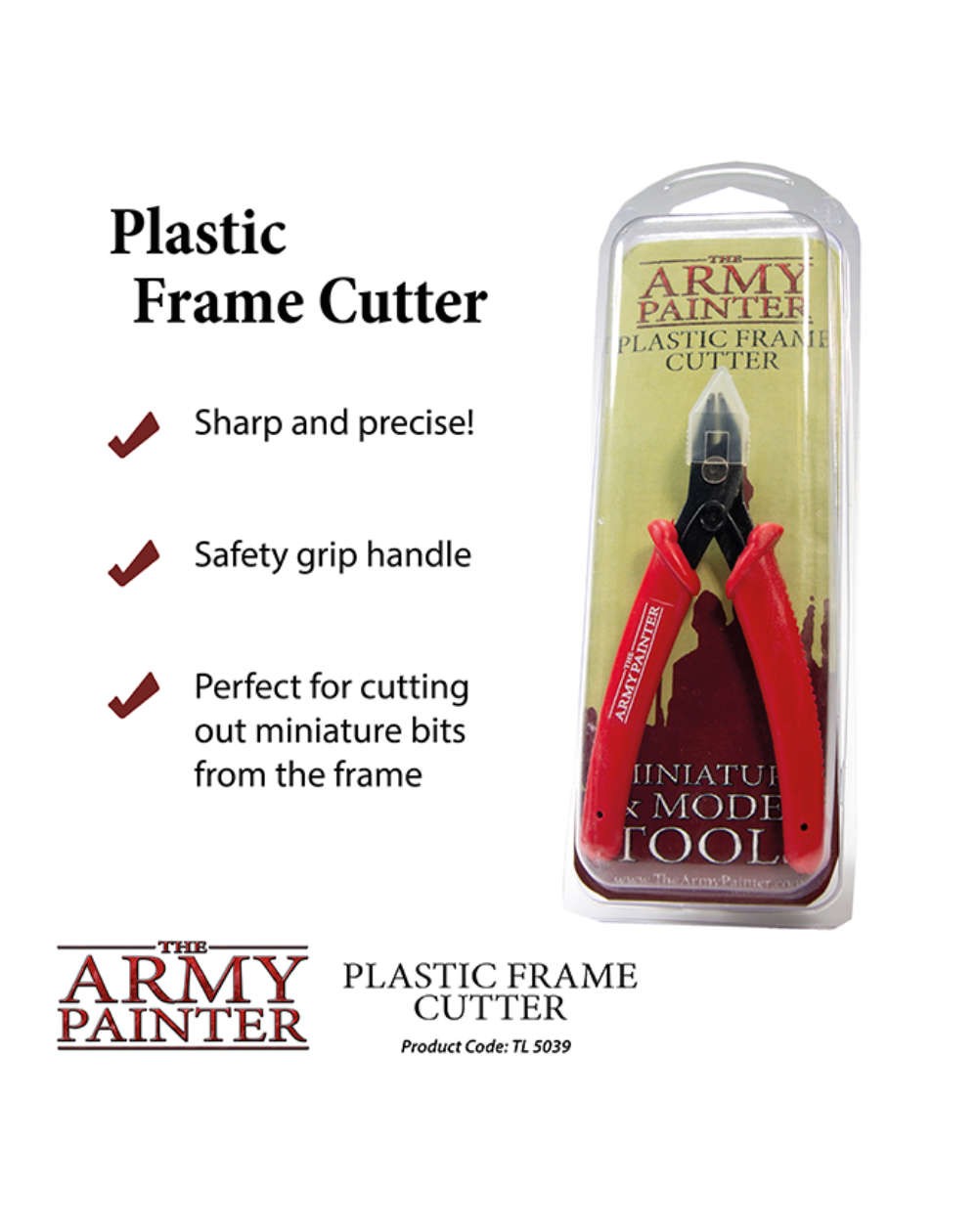 The Plastic Frame Cutter is sharp, thin and precise. With this specialized tool you can cut your models from the sprue with ease and precision. It is ideal for trimming and converting all plastic models and miniatures.